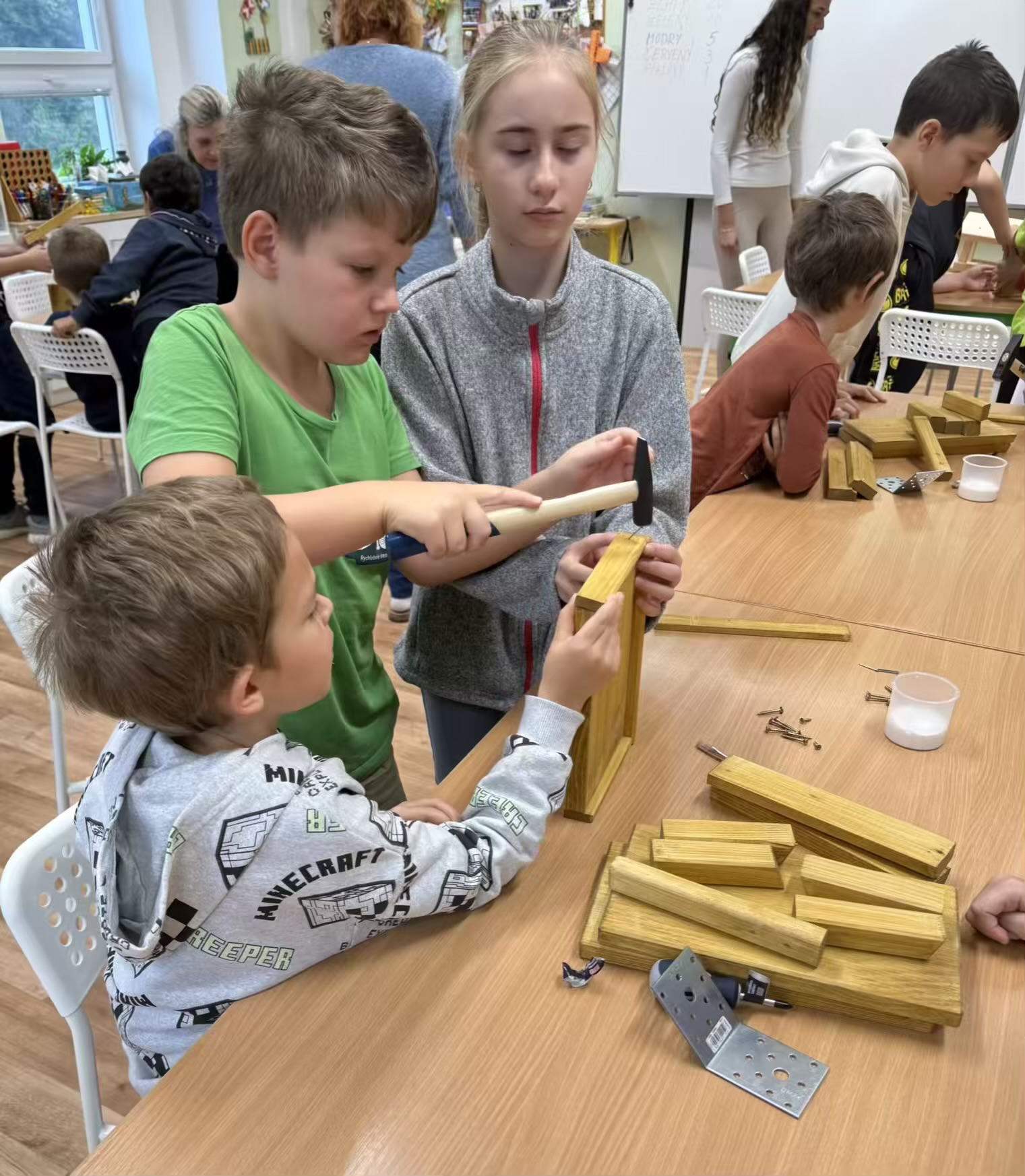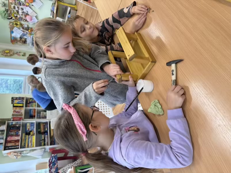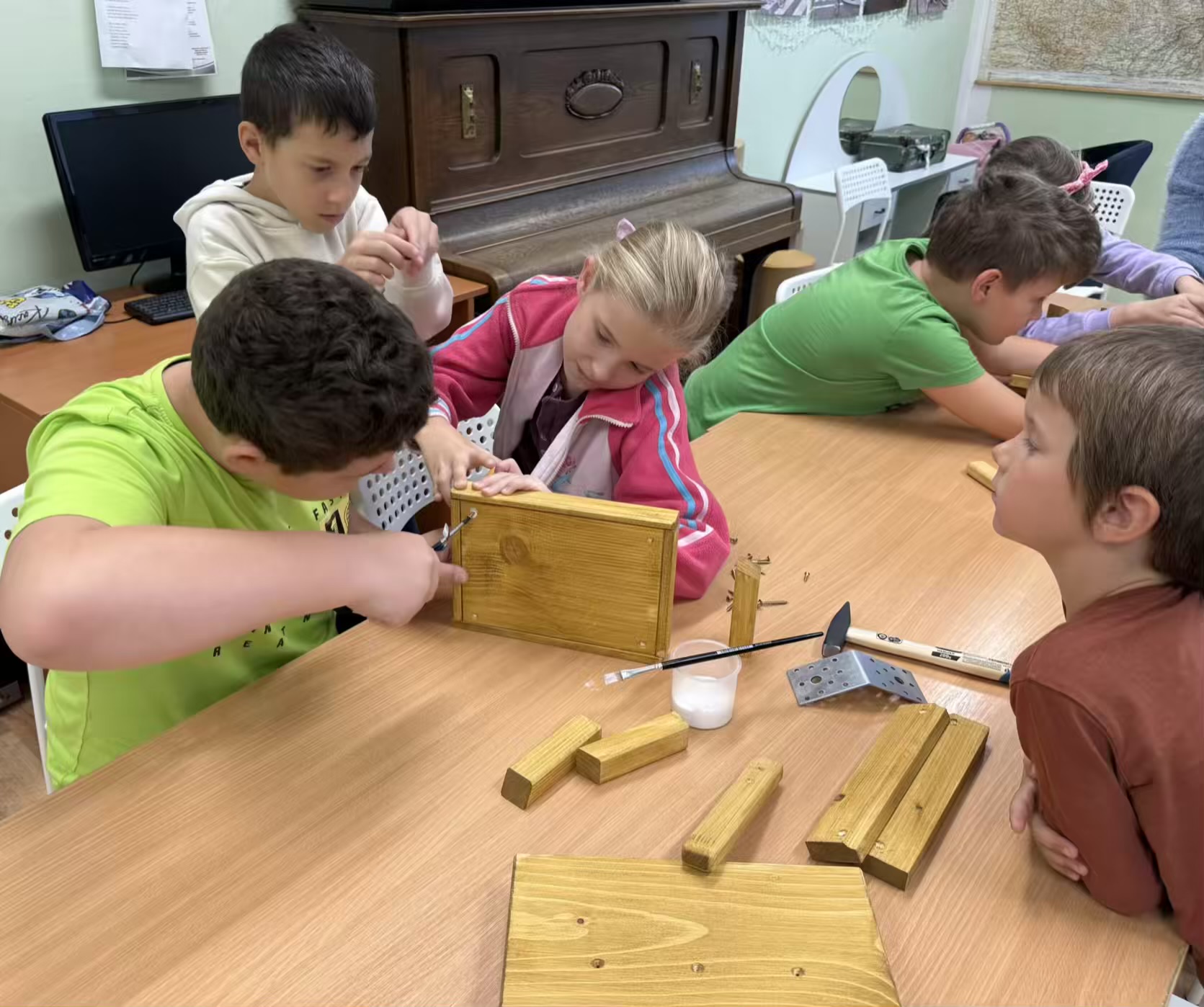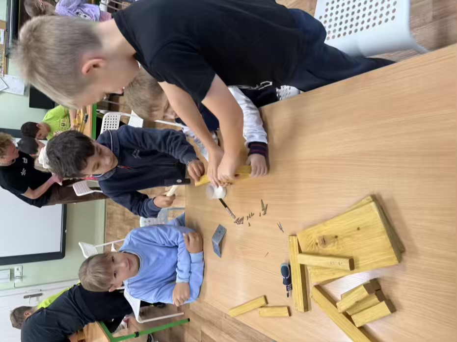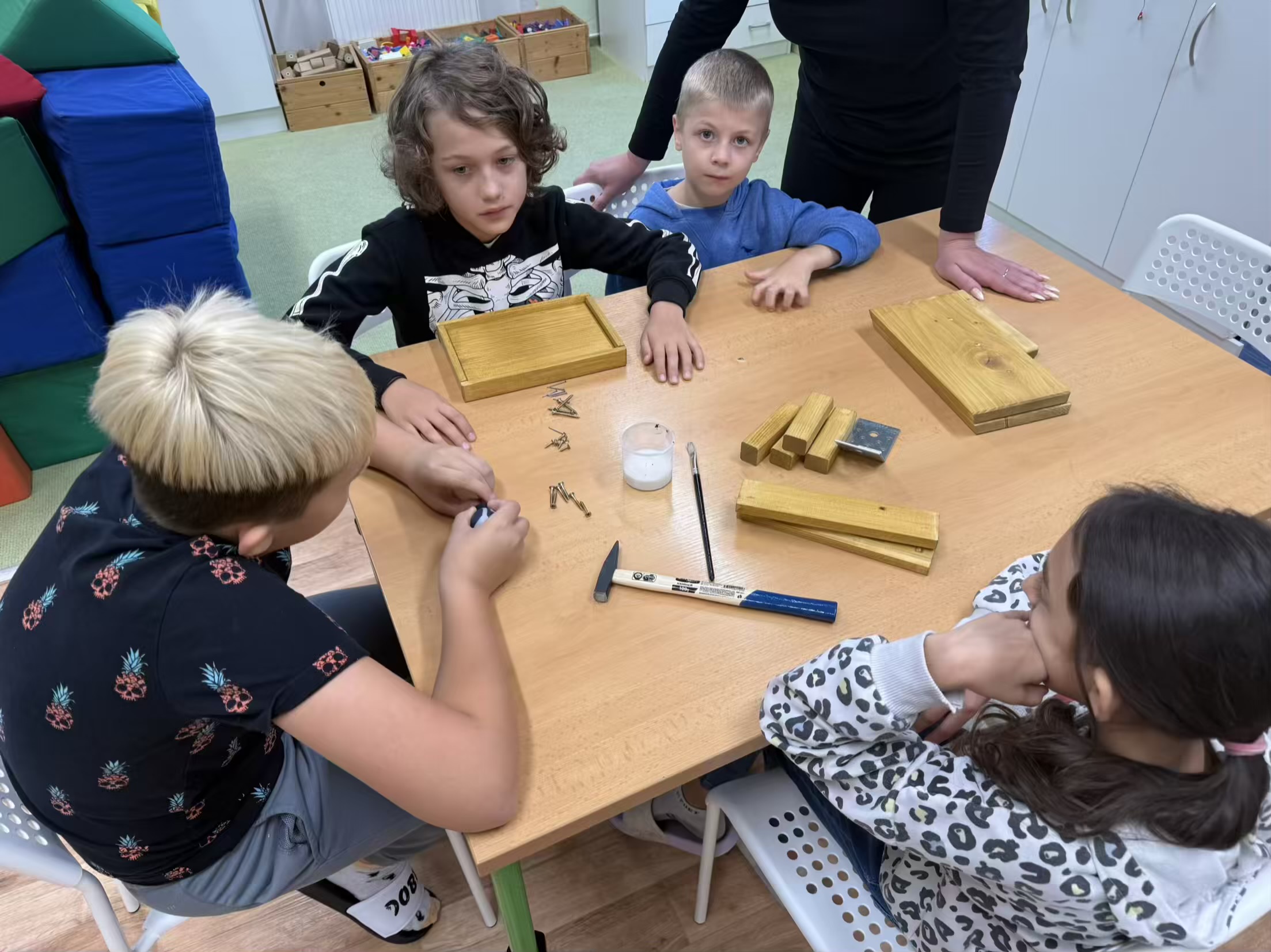 Naše škola se na chvíli změnila v továrnu na krmítka pro opeřence. Pod zkušeným vedením pana Romana Welce se děti pustily do stavby ptačích krmítek. Místo vrtaček a velkých strojů jim stačily šroubováky a kladívka – a nutno říct, že s nimi zacházely s takovou jistotou, že by leckterý domácí kutil mohl zčervenat závistí.