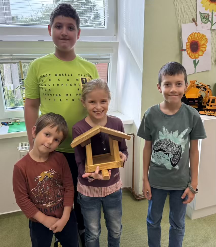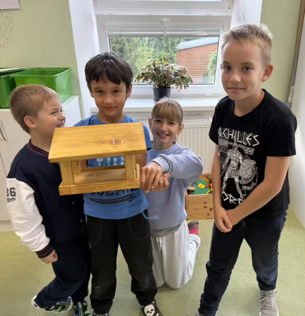 Během dne jsme se učili poznávat různé druhy ptáků a zjistili jsme také, co do krmítek patří – a hlavně co tam rozhodně nepatří. Takže už víme: žádná houska s paštikou, ale semínka, zrníčka a další ptačí delikatesy. Projektový den „Společně pro les“ tak spojil šikovné ruce, zvědavé hlavy a radost z toho, že můžeme pomoci přírodě. Teď už jen čekáme, až se na zahradě rozezní velký ptačí koncert s občerstvením zdarma.
