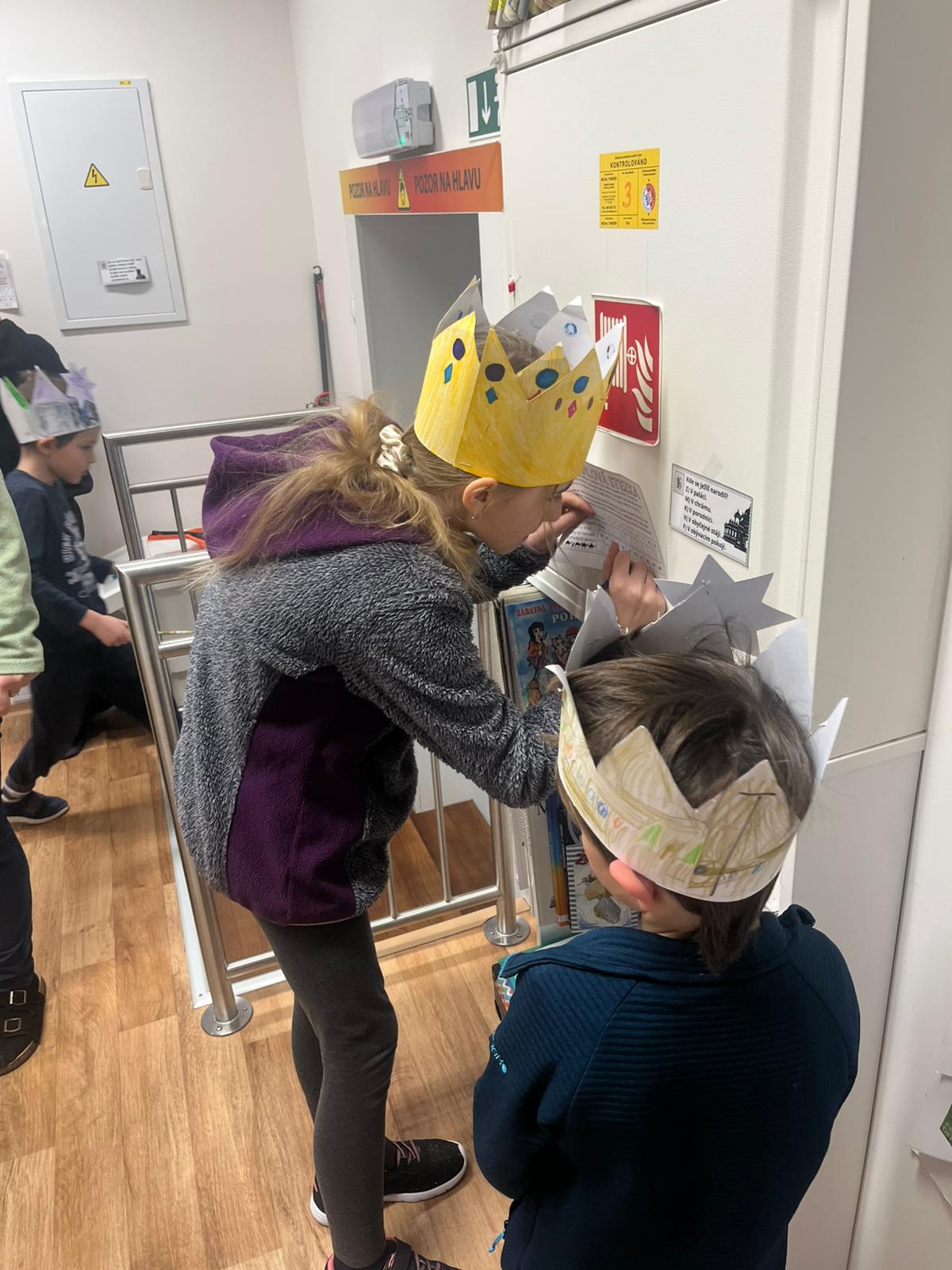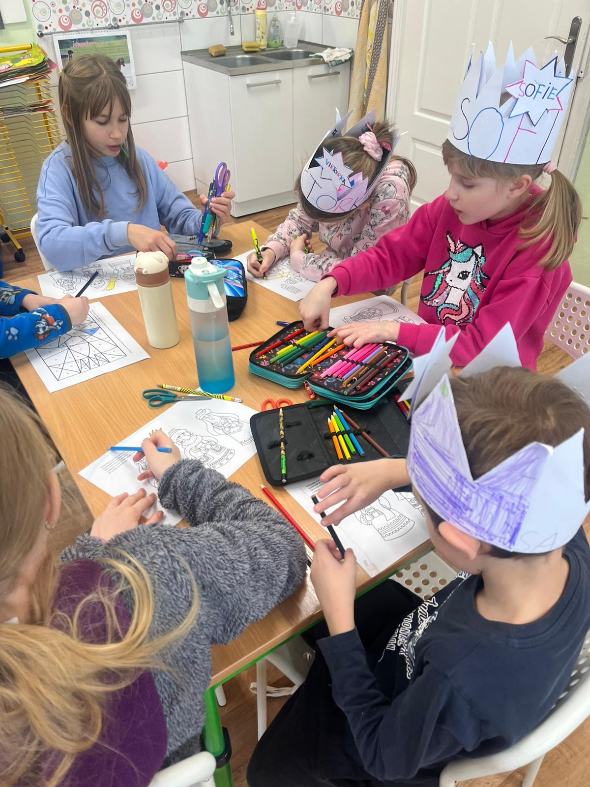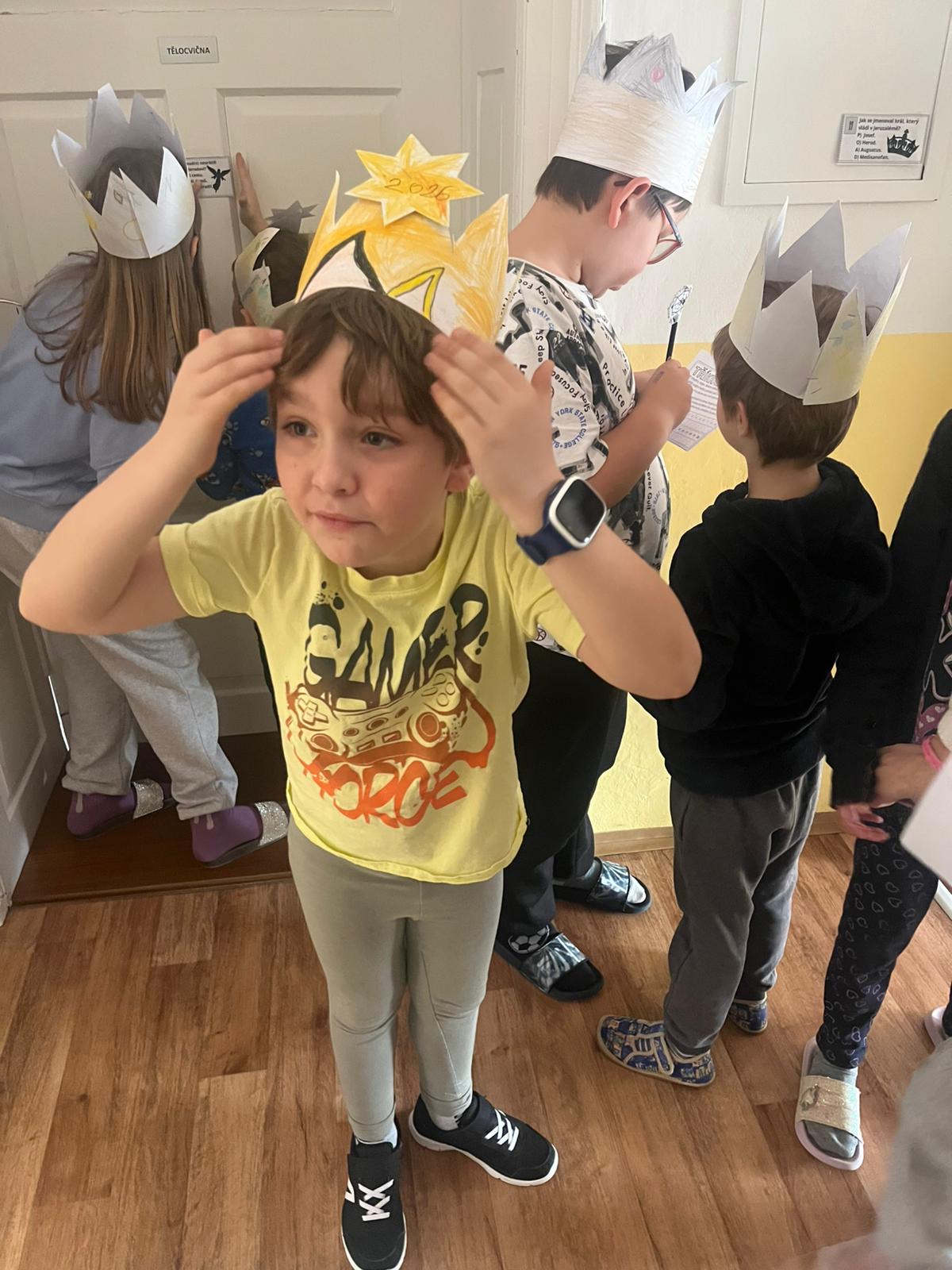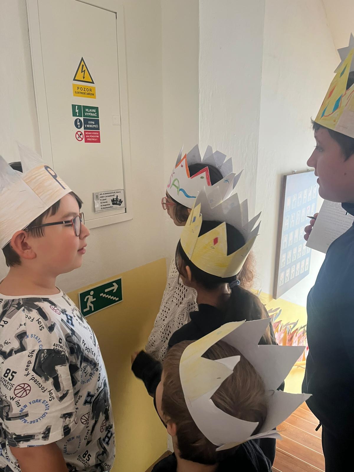 Součástí projektového dne byly tvořivé a hravé činnosti. Děti si vyráběly vlastní koruny, pracovaly s tematickými omalovánkami a plnily různé úkoly, které byly rozmístěny na chodbě školy. Díky tomu se mohly pohybovat, spolupracovat a učit se zábavnou formou.