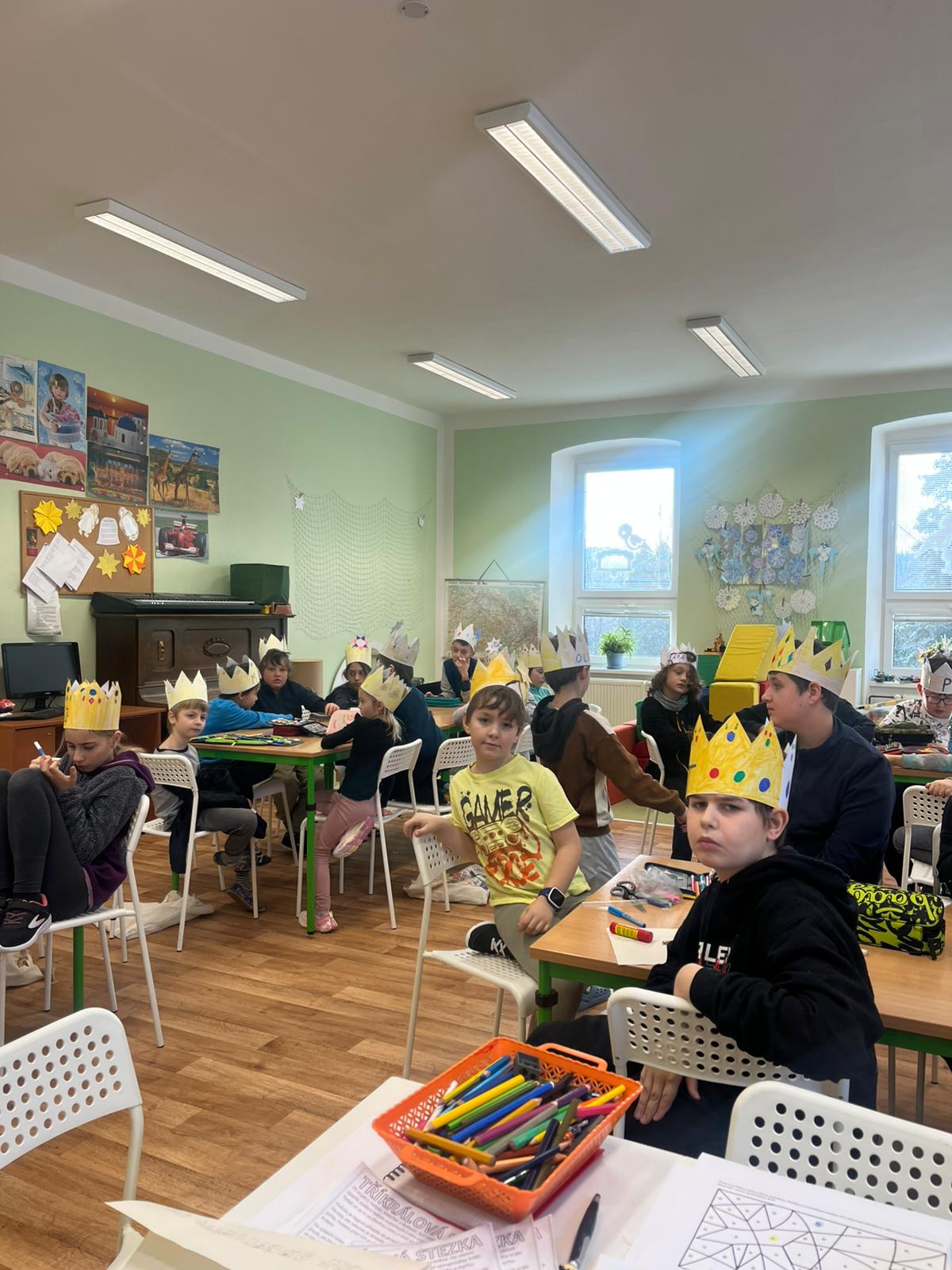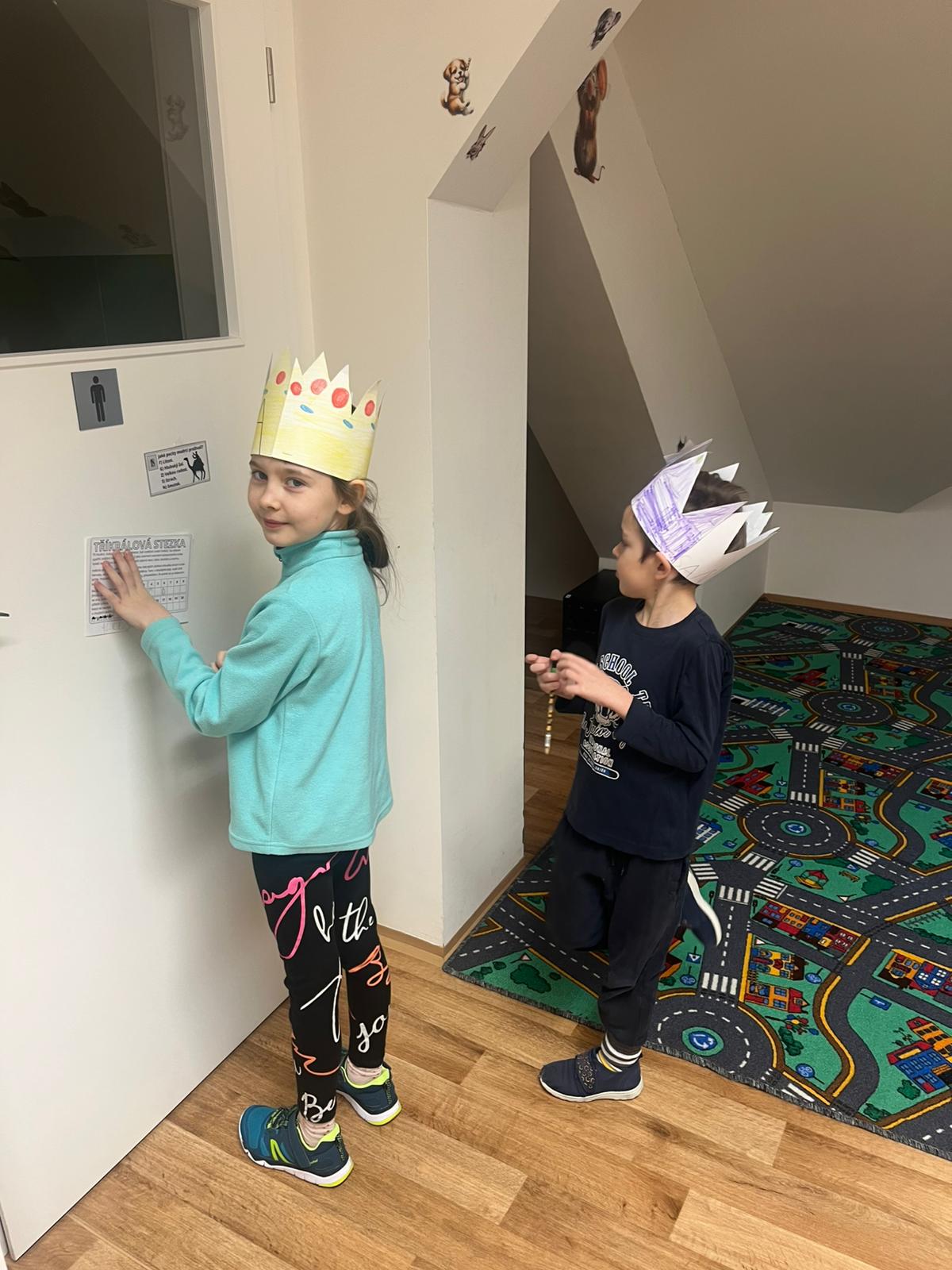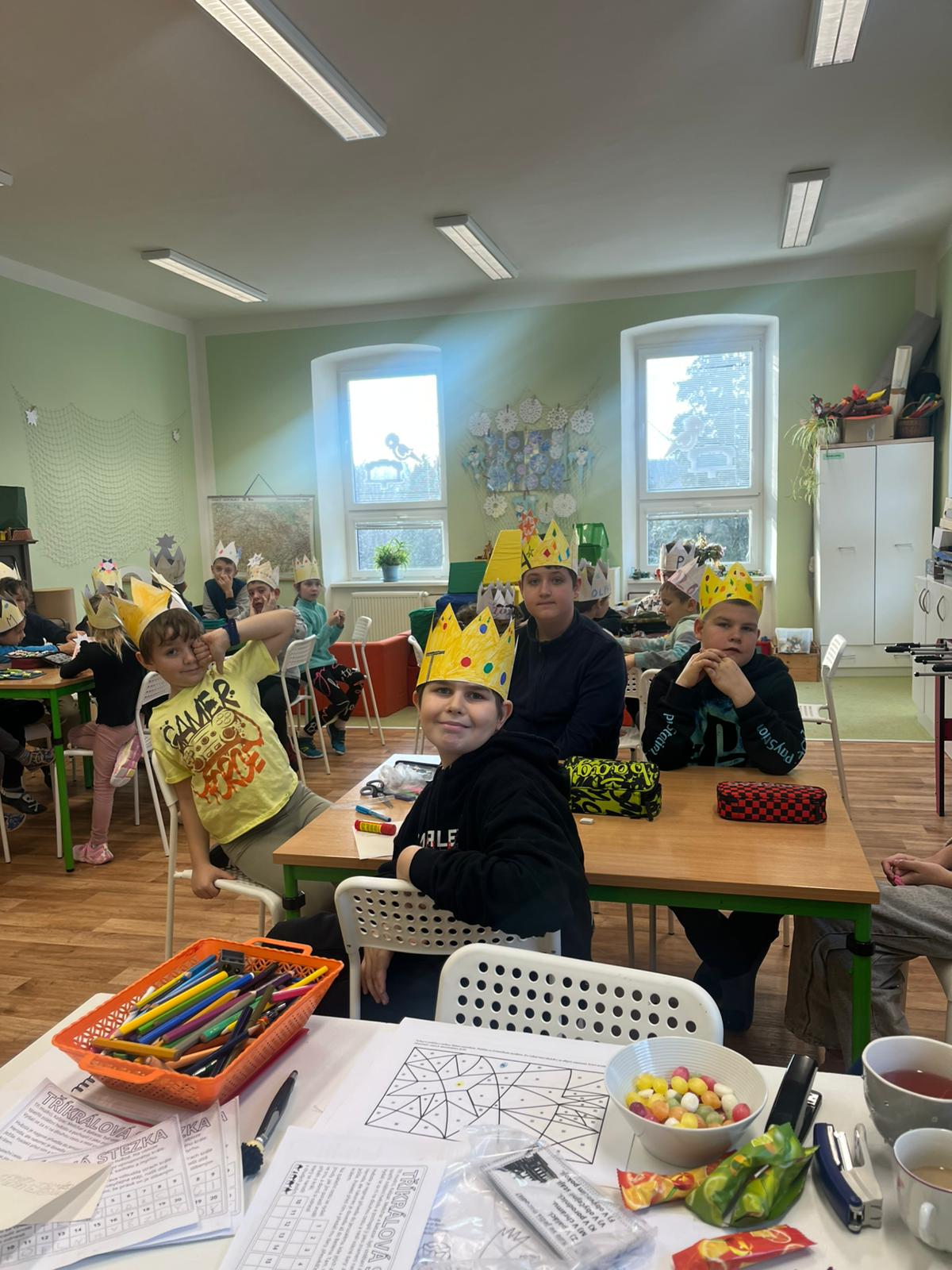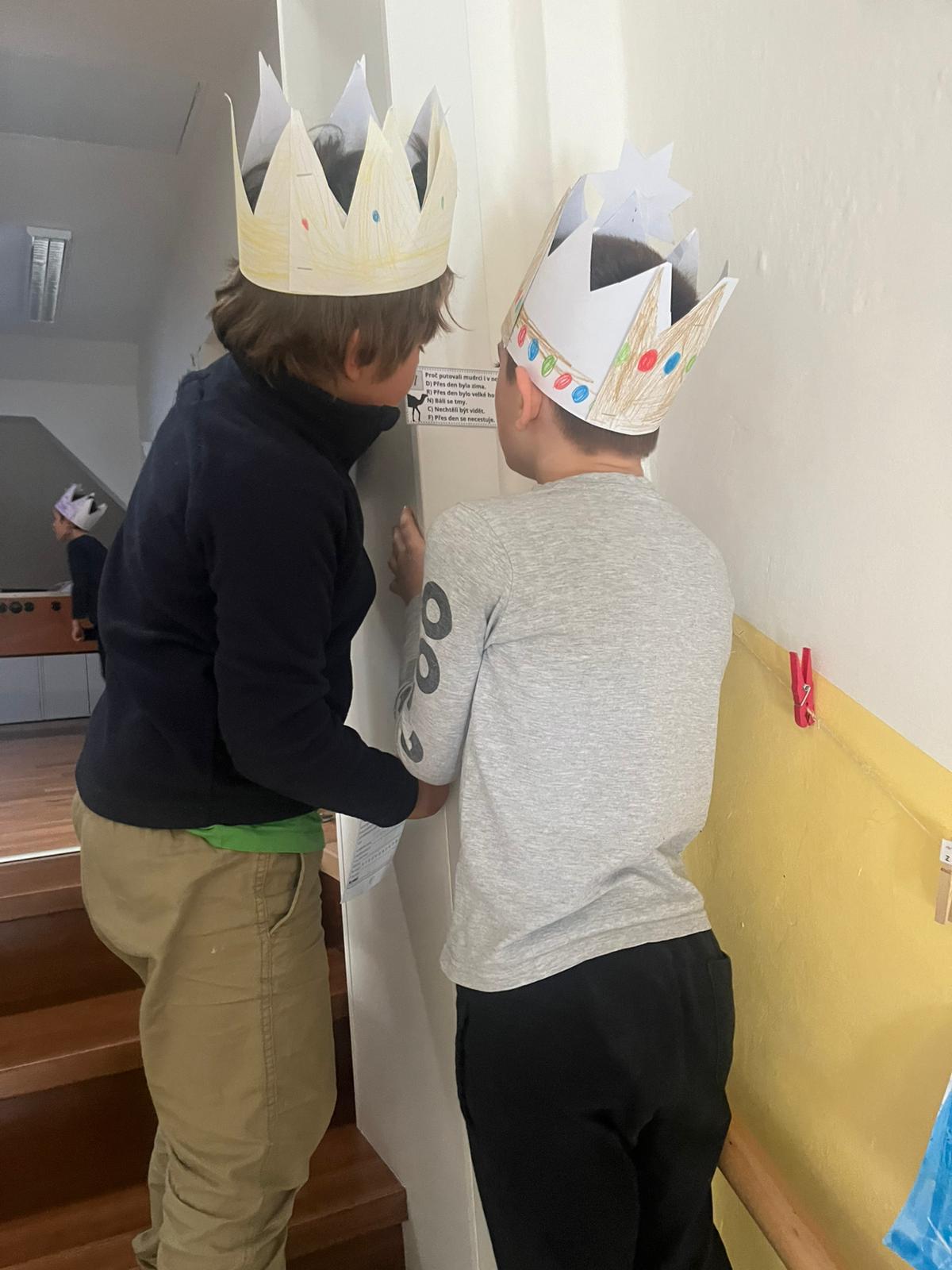 Součástí projektového dne byly tvořivé a hravé činnosti. Děti si vyráběly vlastní koruny, pracovaly s tematickými omalovánkami a plnily různé úkoly, které byly rozmístěny na chodbě školy. Díky tomu se mohly pohybovat, spolupracovat a učit se zábavnou formou.