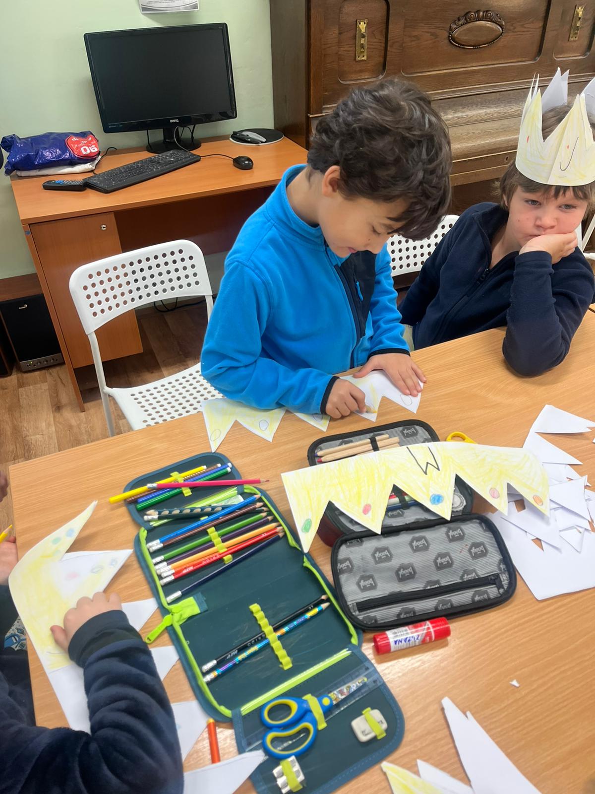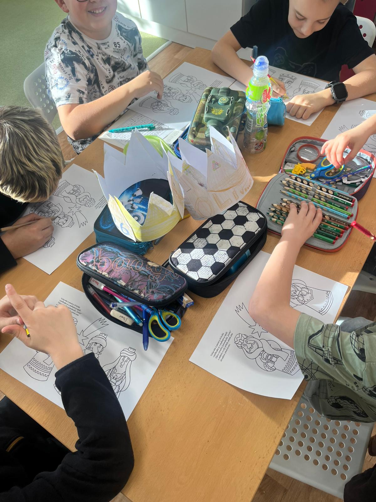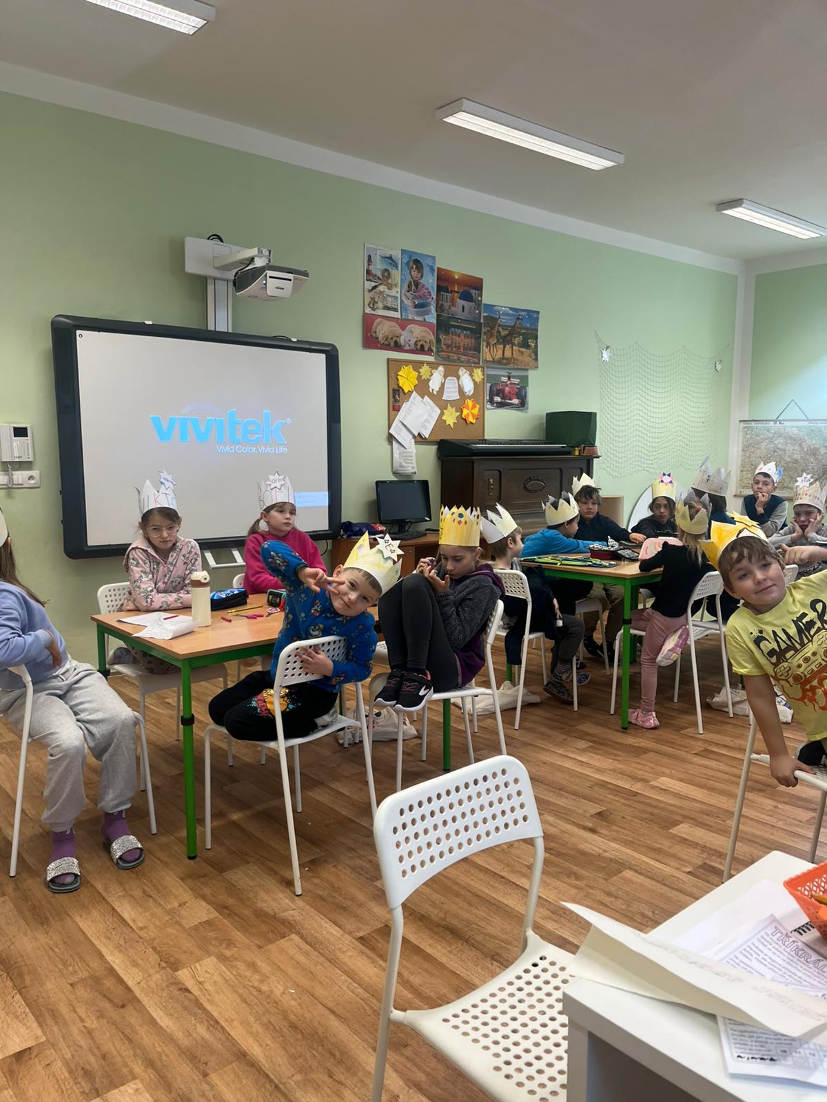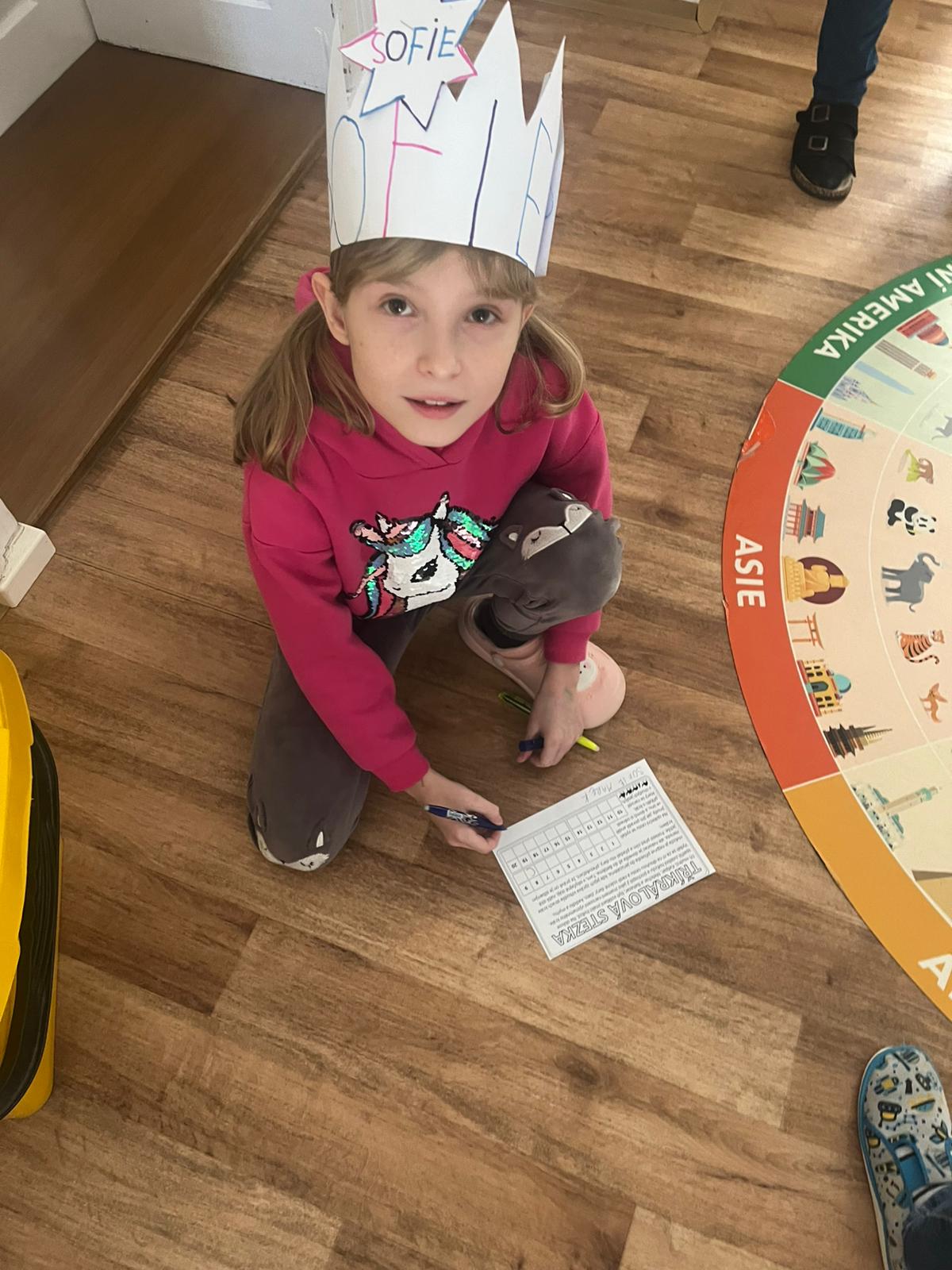 Součástí projektového dne byly tvořivé a hravé činnosti. Děti si vyráběly vlastní koruny, pracovaly s tematickými omalovánkami a plnily různé úkoly, které byly rozmístěny na chodbě školy. Díky tomu se mohly pohybovat, spolupracovat a učit se zábavnou formou.