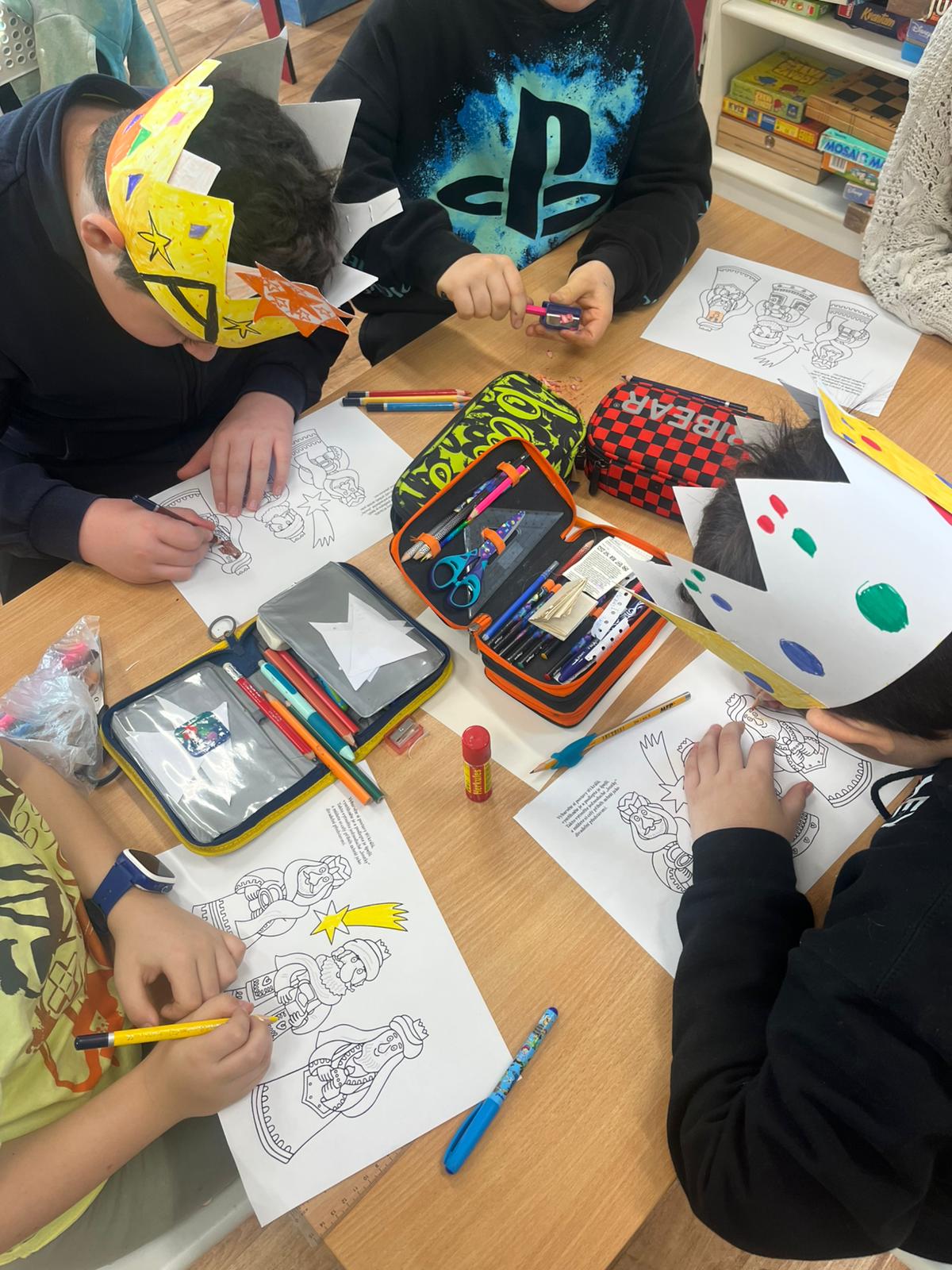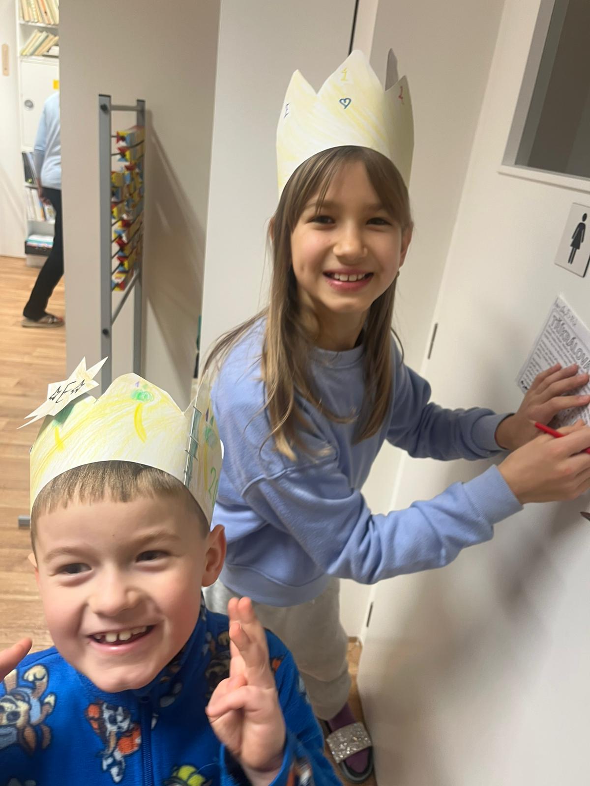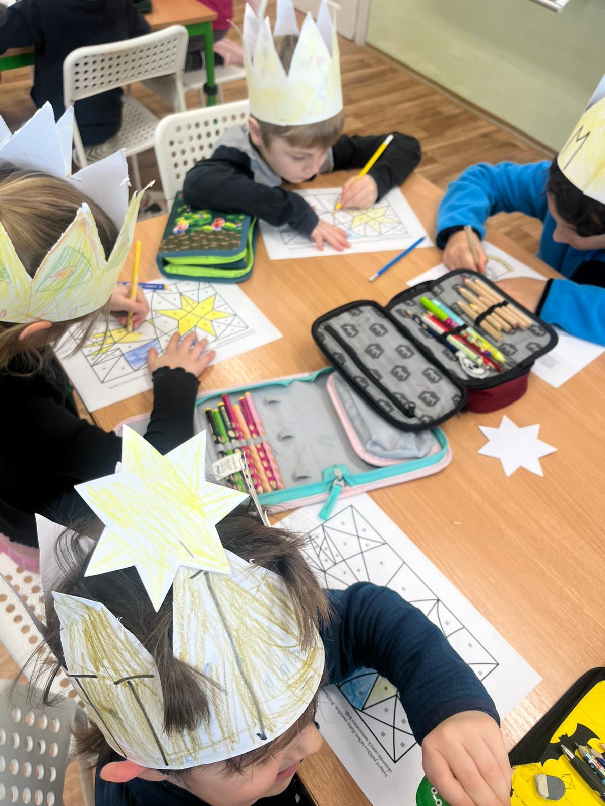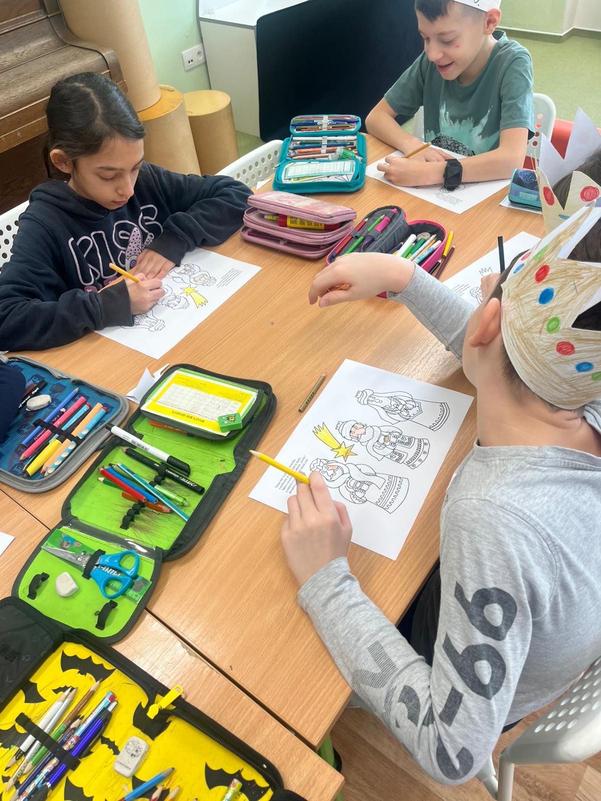 Součástí projektového dne byly tvořivé a hravé činnosti. Děti si vyráběly vlastní koruny, pracovaly s tematickými omalovánkami a plnily různé úkoly, které byly rozmístěny na chodbě školy. Díky tomu se mohly pohybovat, spolupracovat a učit se zábavnou formou.