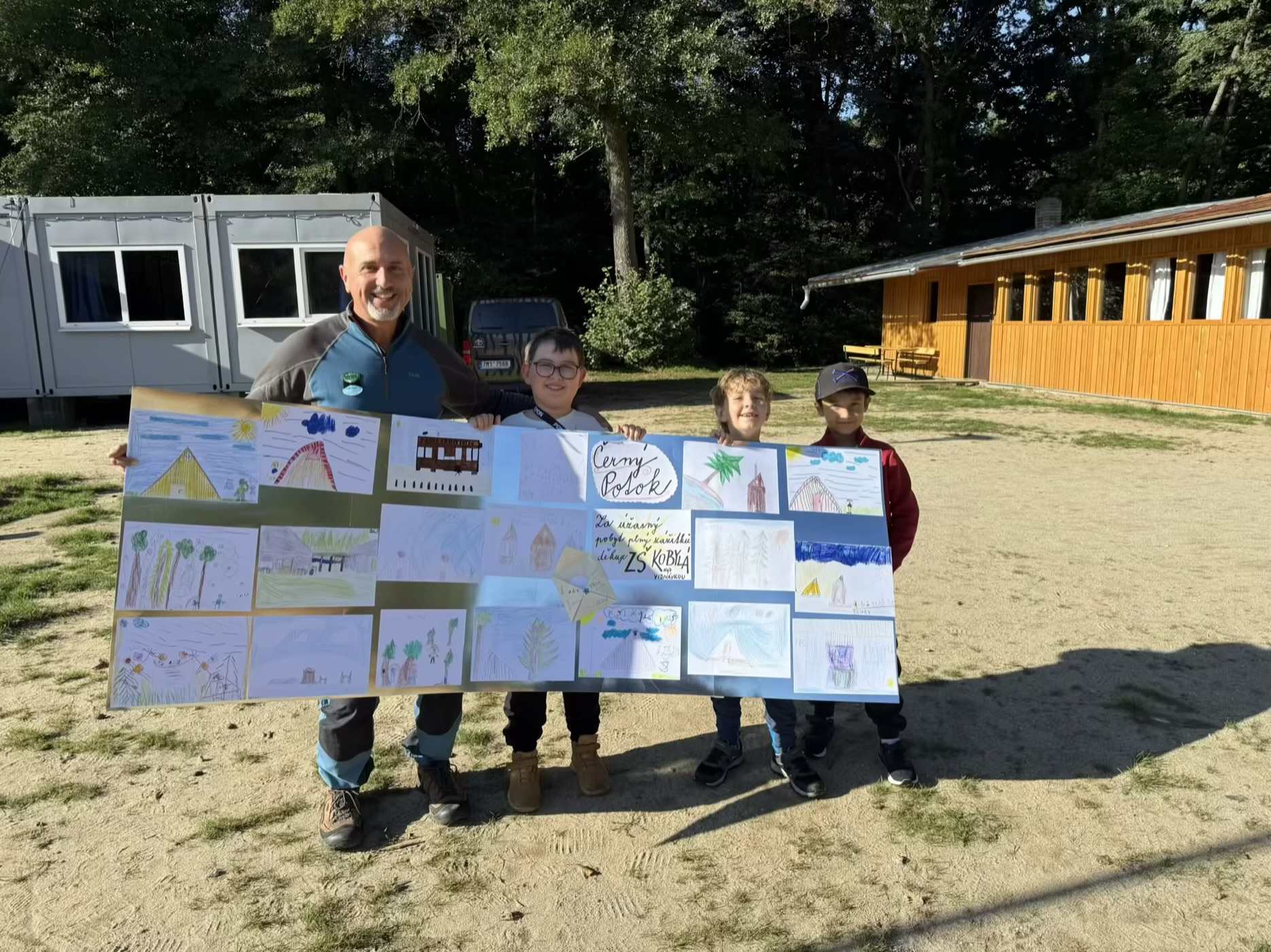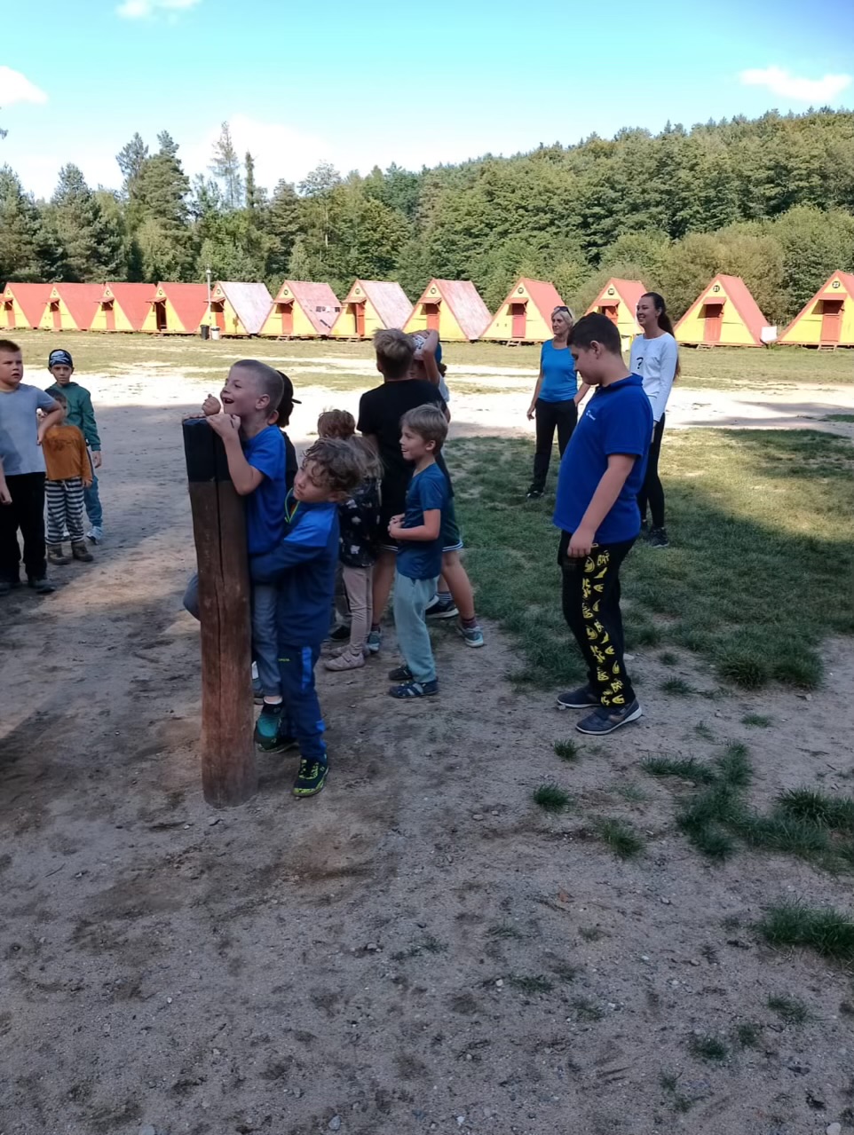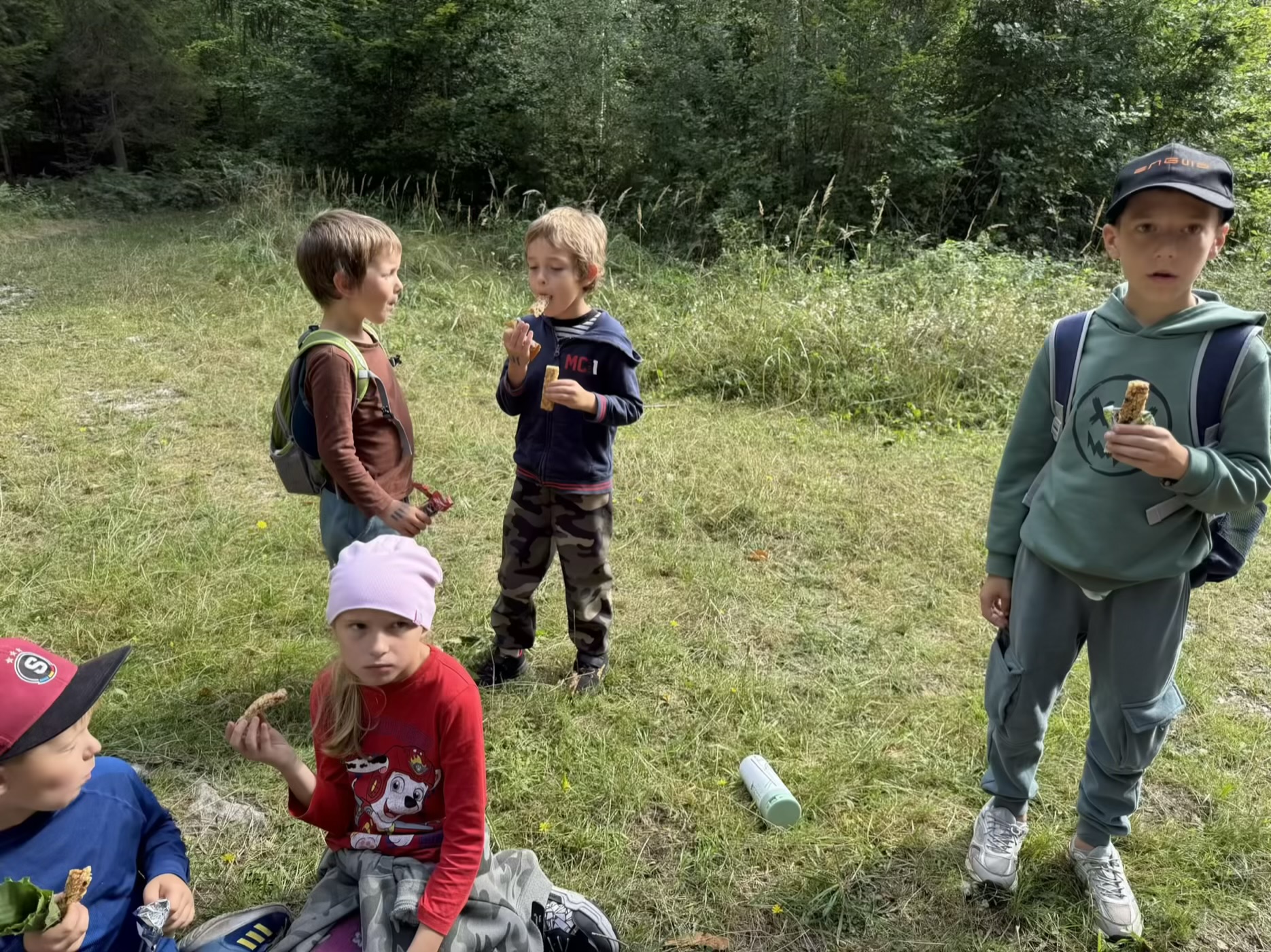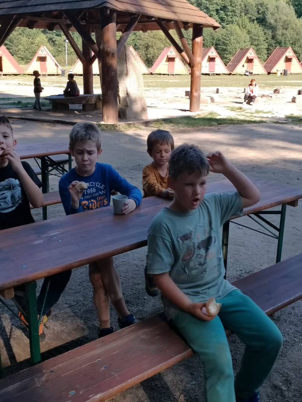 Na začátku školního roku (8.9. - 10.9.) jsme se s dětmi vydali na třídenní "Výjezd za dobrodružstvím" do Cyklokempu Černý Potok. Už první den na nás čekala pořádná porce zážitků. Po příjezdu se děti zabydlely v chatkách a hned poté se učily sbíhat na svolávací hudbu - ať už hrála nebo ne, bylo vždy veselo. Následovaly první úkoly, které děti plnily s nadšením, a večer nás čekal slavnostní táborák. Romantiku u ohně ale brzy vystřídala dramatická noční bouřka. Některé děti měly strach, ale všichni statečně vydrželi. Nikdo se nevzdal, nikdo neutekl - a to se cení!