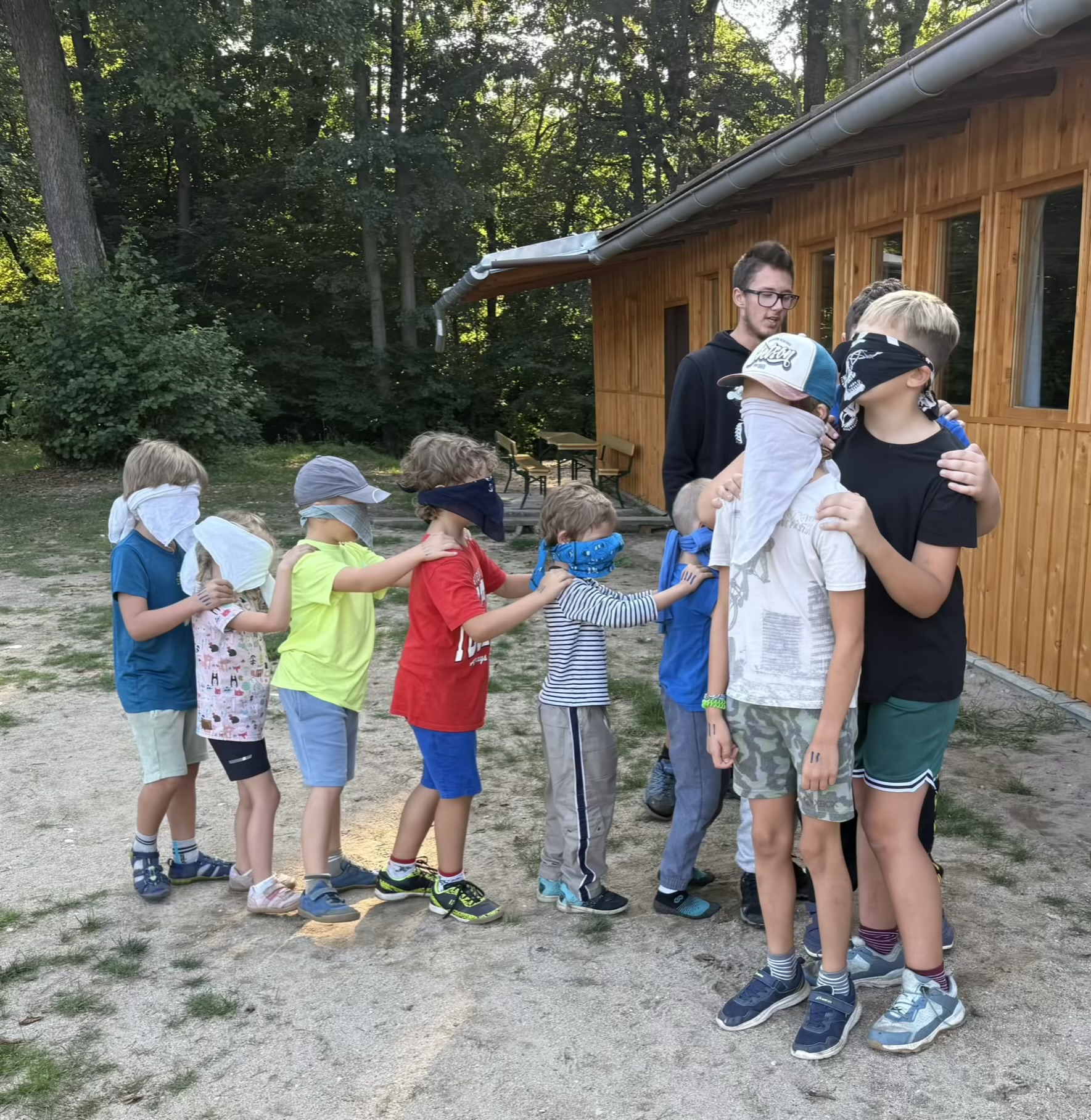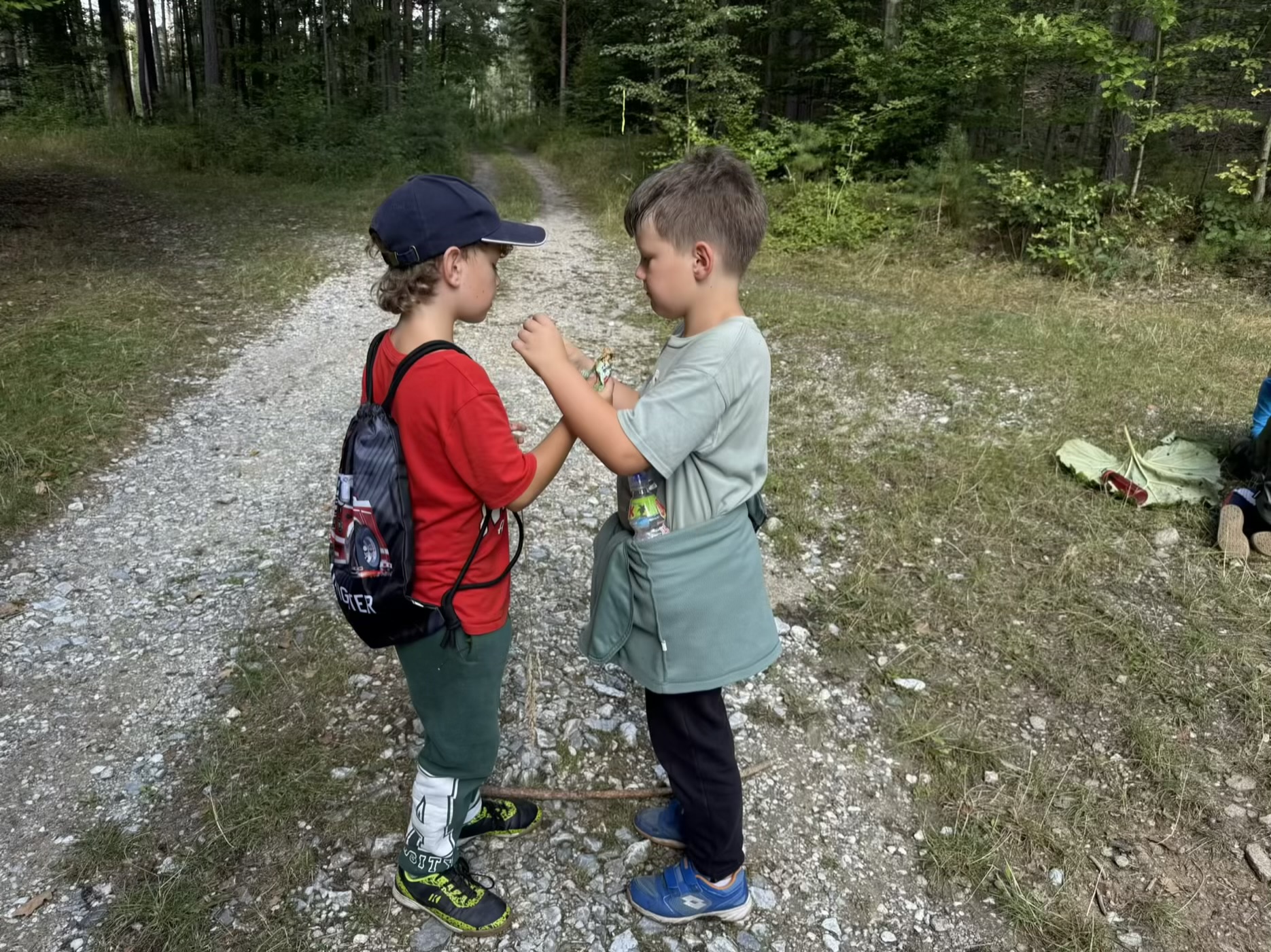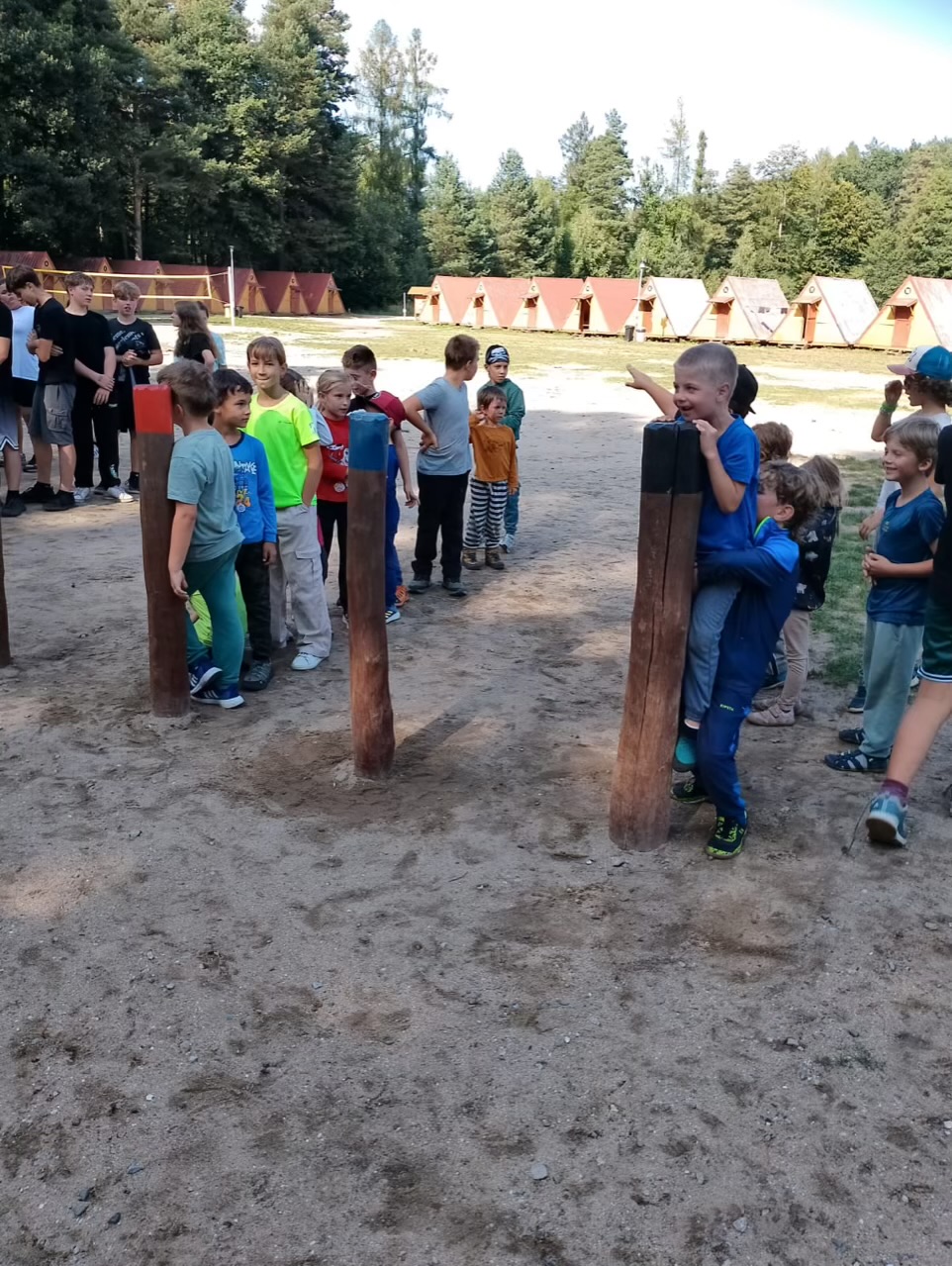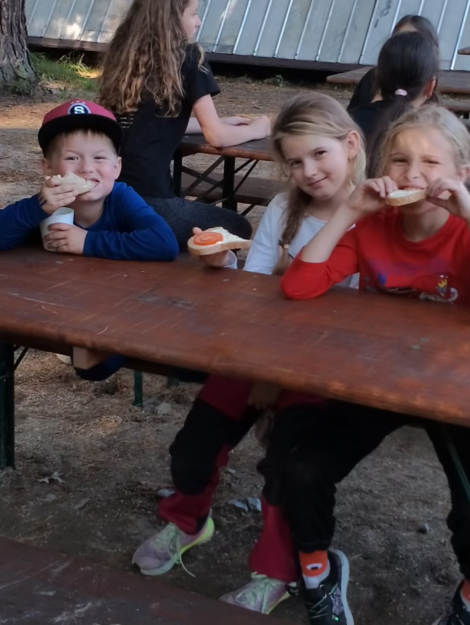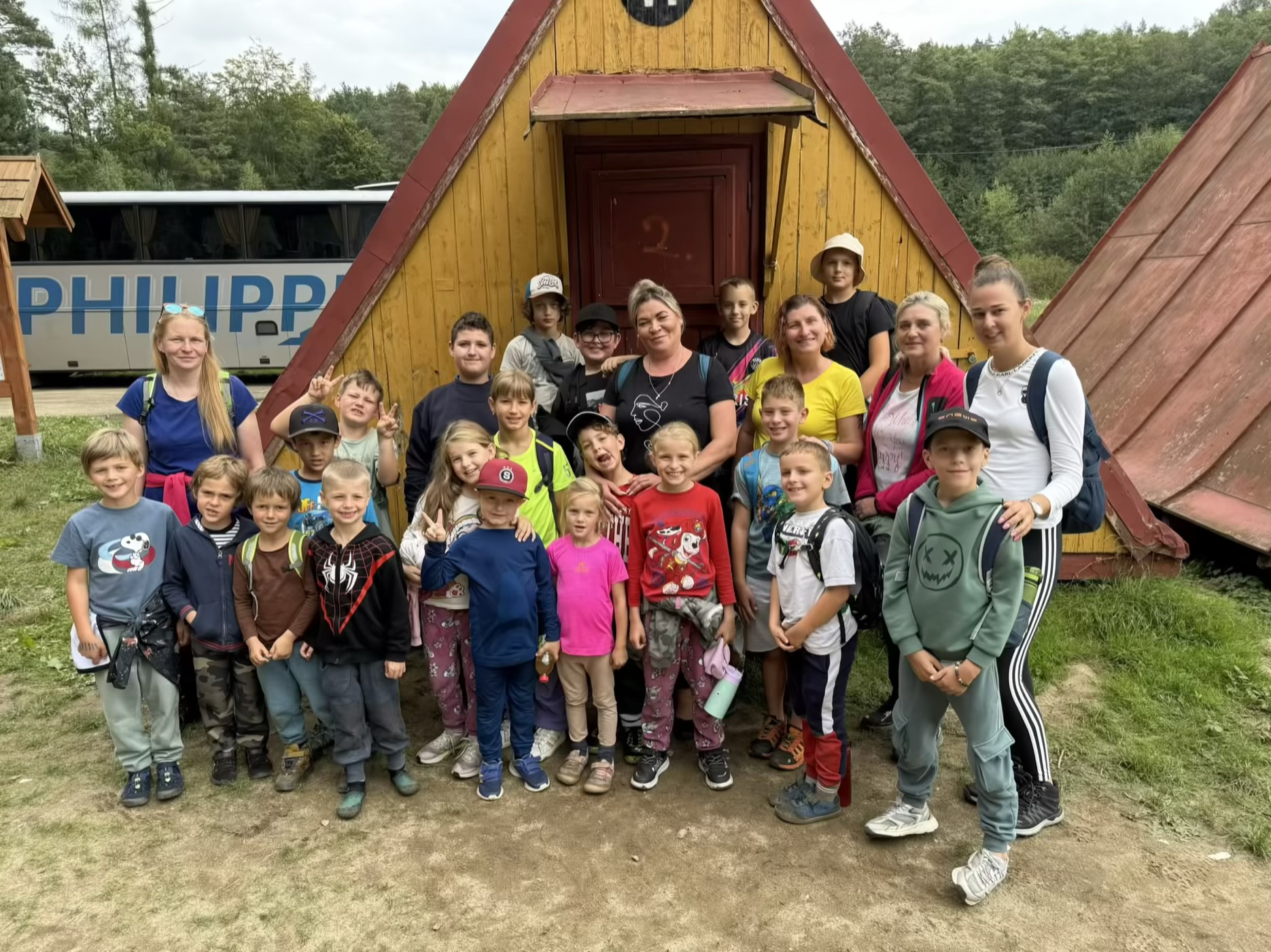 Na začátku školního roku (8.9. - 10.9.) jsme se s dětmi vydali na třídenní "Výjezd za dobrodružstvím" do Cyklokempu Černý Potok. Už první den na nás čekala pořádná porce zážitků. Po příjezdu se děti zabydlely v chatkách a hned poté se učily sbíhat na svolávací hudbu - ať už hrála nebo ne, bylo vždy veselo. Následovaly první úkoly, které děti plnily s nadšením, a večer nás čekal slavnostní táborák. Romantiku u ohně ale brzy vystřídala dramatická noční bouřka. Některé děti měly strach, ale všichni statečně vydrželi. Nikdo se nevzdal, nikdo neutekl - a to se cení!